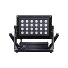 Powerful IP-rated LED flood with 24 high-output tri-colour LEDs, built for bold outdoor illumination.