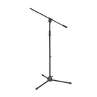 Durable tall boom microphone stand designed for flexible mic positioning in live or studio environments.