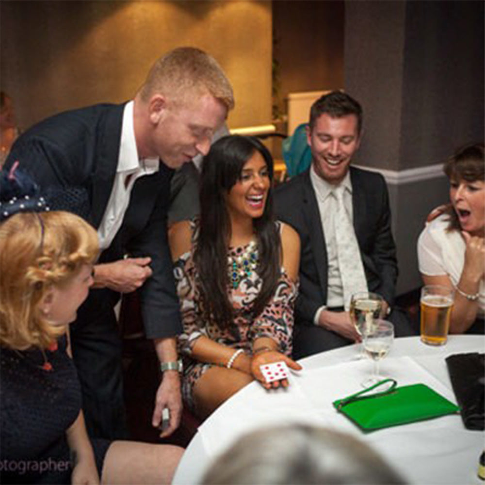 Booking a good Close-Up Magician adds a unique form of entertainment to any social event, helping to break uneasy silences and allowing your guests to interact. Close-Up Magic is the perfect icebreaker for formal occasions, social events or just plain mix and mingle. As a one man act with a huge repertoire of magic all my props are self-contained in my pockets or borrowed ready to go anywhere at any time throughout your event. I don’t require a specific performing area and I can stop and start at a moment’s notice.
